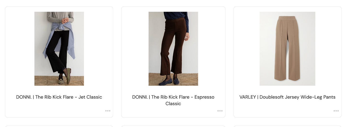 Bonus pant find: the Donni Ribbed Kick Flare. You’ve probably heard of this unicorn pant—it’s everywhere for a reason. And rather than rewriting the story, I’ll point you to Maura Brannigan’s essay on the pant that changed a million (billion?) drop-offs. It’s that good.